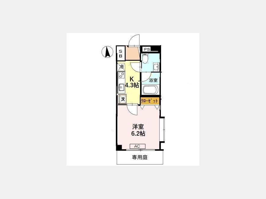 洋室 6.2 畳 K 4.3 畳 |