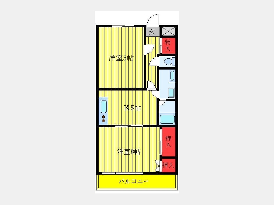K 5 畳 洋室 5 畳 洋室 6 畳 |