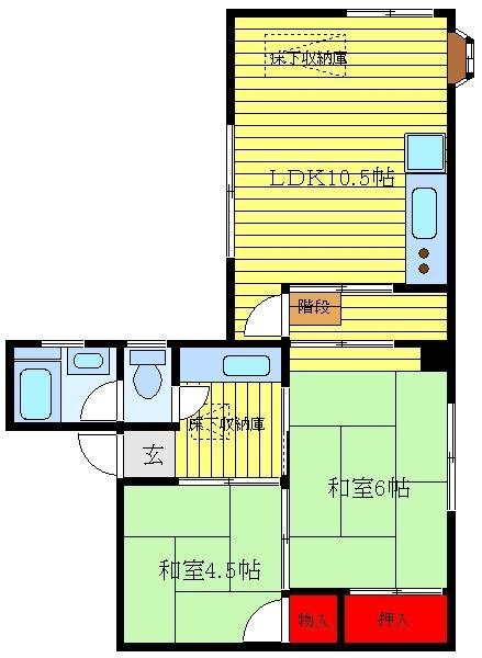 和室 6 畳 和室 4.5 畳 LDK 10.5 畳 |
