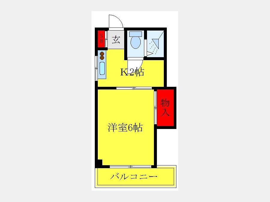 洋室 6 畳 1 室 K 2 畳 1 室 |