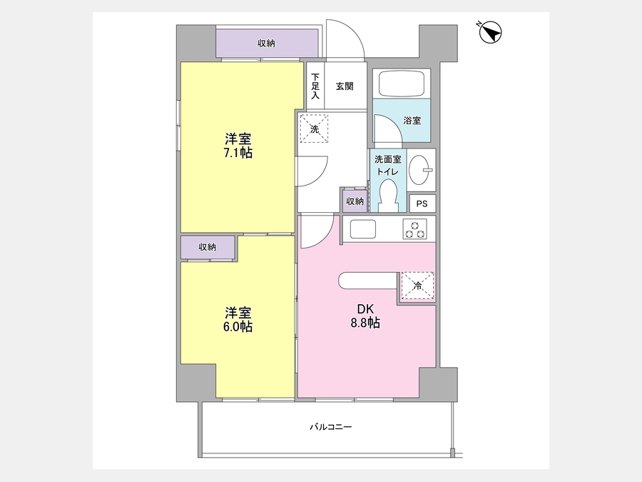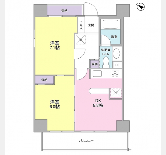 洋室 7.1 畳 洋室 6 畳 DK 8.8 畳 |