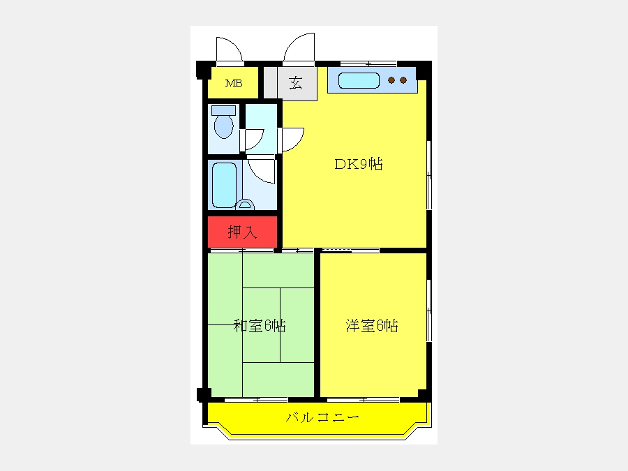 和室 6 畳 洋室 6 畳 DK 9 畳 |