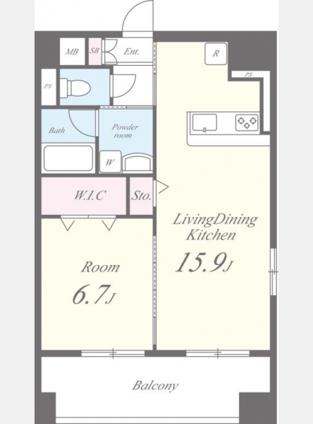 LDK 15.9 畳 1 室 洋室 6.7 畳 1 室 |