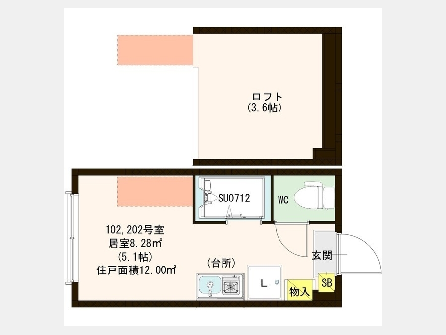 洋室 5.1 畳 ロフト3.6帖 |