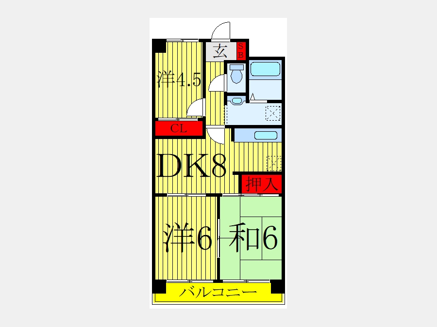DK 8 畳 洋室 6 畳 洋室 4.5 畳 和室 6 畳 |