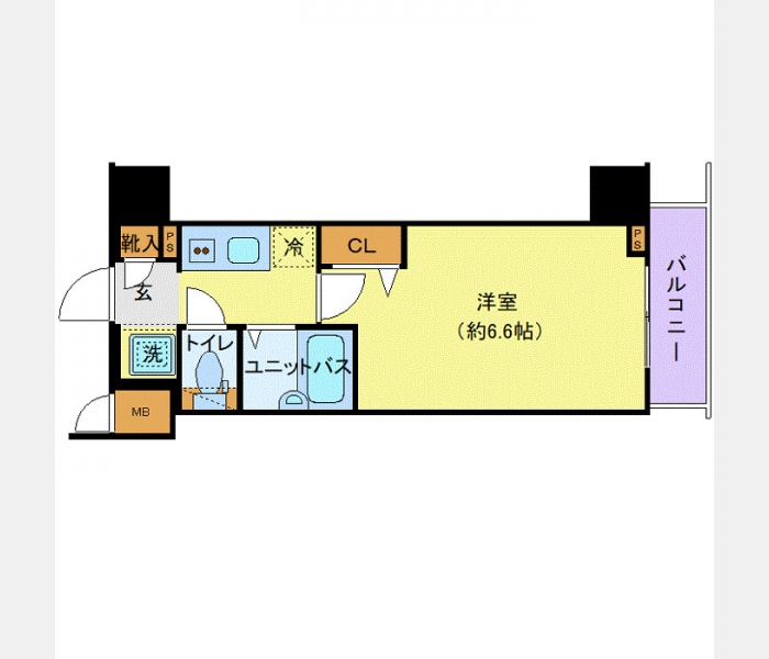 洋室 6.6 畳 1 室 K 1 室 |