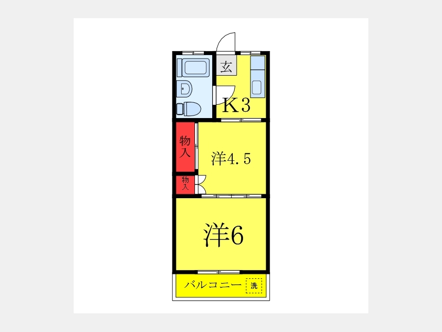 K 3 畳 2 階 1 室 洋室 6 畳 2 階 1 室 洋室 4.5 畳 2 階 1 室 |