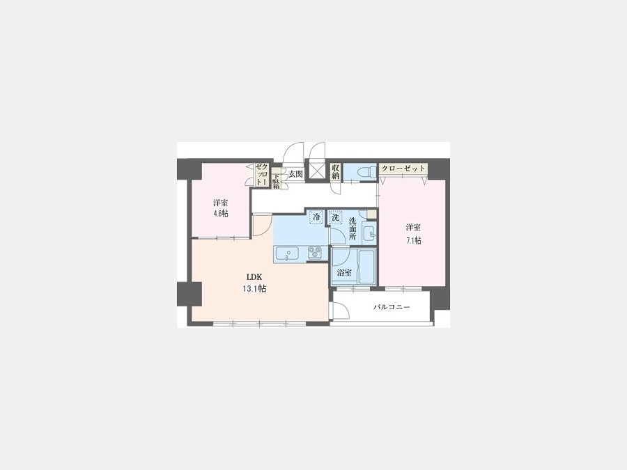 洋室 7.1 畳 洋室 4.6 畳 LDK 13.1 畳 |