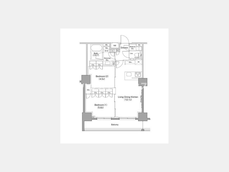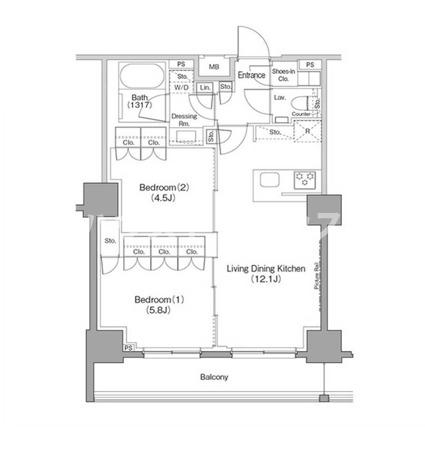 LDK 12.1 畳 1 室 洋室 5.8 畳 1 室 洋室 4.5 畳 1 室 |