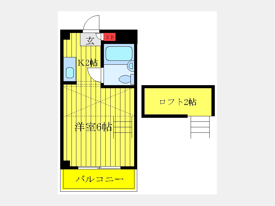 洋室 6 畳 K 2 畳 ロフト2帖 |