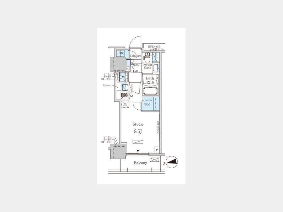 | 間取り | 1R | 階建 | 6階/13階建 |