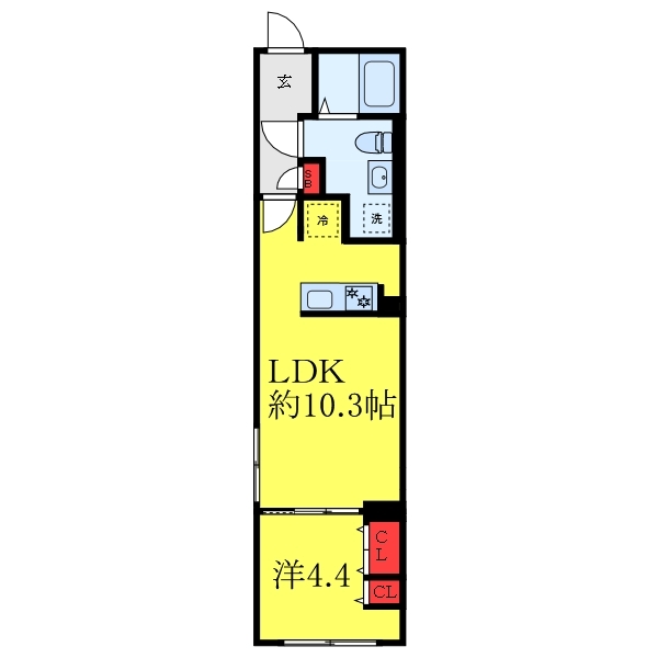 LDK 10.3 畳 1 室 洋室 4.4 畳 1 室 |