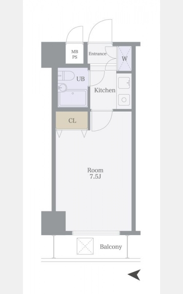 | 間取り | 1K | 階建 | 2階/8階建(B1階) |