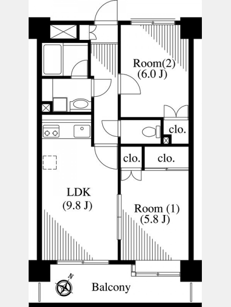 LDK 9.8 畳 洋室 6 畳 洋室 5.8 畳 |