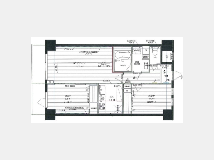 洋室 6.3 畳 1 室 洋室 6 畳 1 室 LDK 12.4 畳 1 室 |