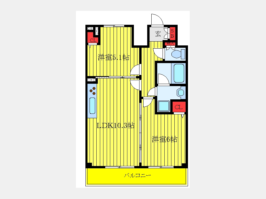 洋室 6 畳 洋室 5.1 畳 LDK 10.3 畳 |