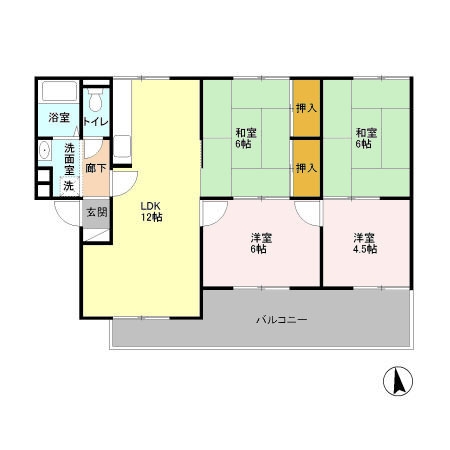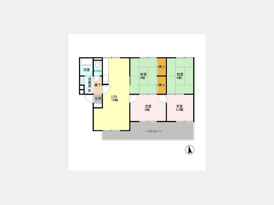 和室 6 畳 和室 6 畳 洋室 4.5 畳 洋室 6 畳 LDK 12 畳 |