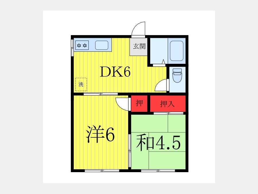 洋室 6 畳 和室 4.5 畳 DK 6 畳 |