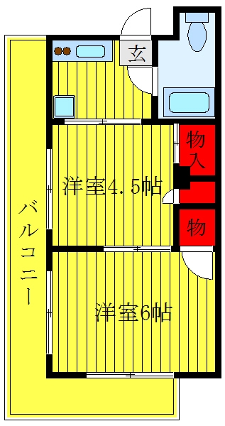 洋室 6 畳 1 室 洋室 4.5 畳 1 室 K 2 畳 1 室 |