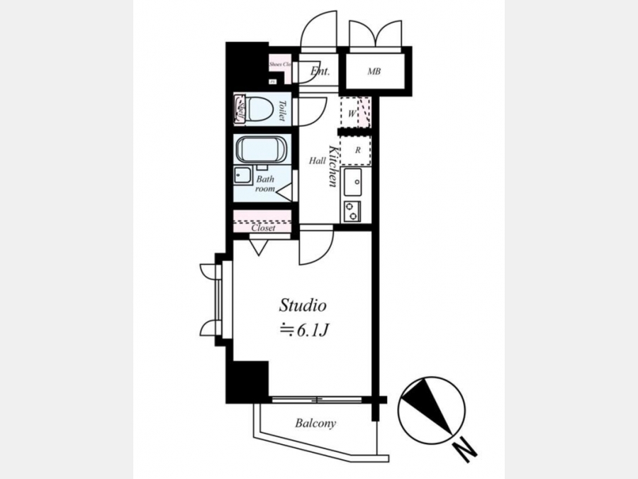 | 間取り | 1K | 階建 | 4階/13階建(B1階) |
