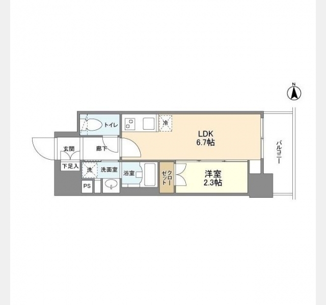 DK 6.7 畳 1 室 洋室 2.3 畳 1 室 |