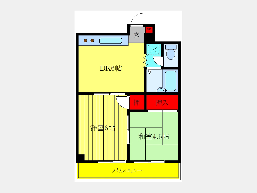 洋室 6 畳 和室 4.5 畳 DK 6 畳 |