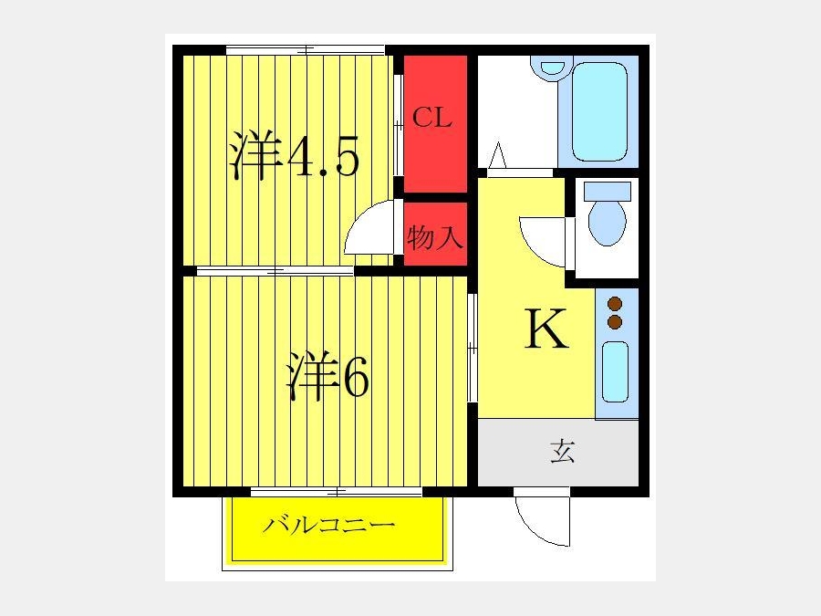 洋室 4.5 畳 洋室 6 畳 K 3 畳 |