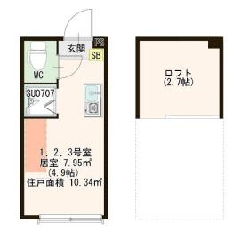 | 敷金/礼金 | 1ヶ月 / 1ヶ月 | 専有面積 | 10.34m² |