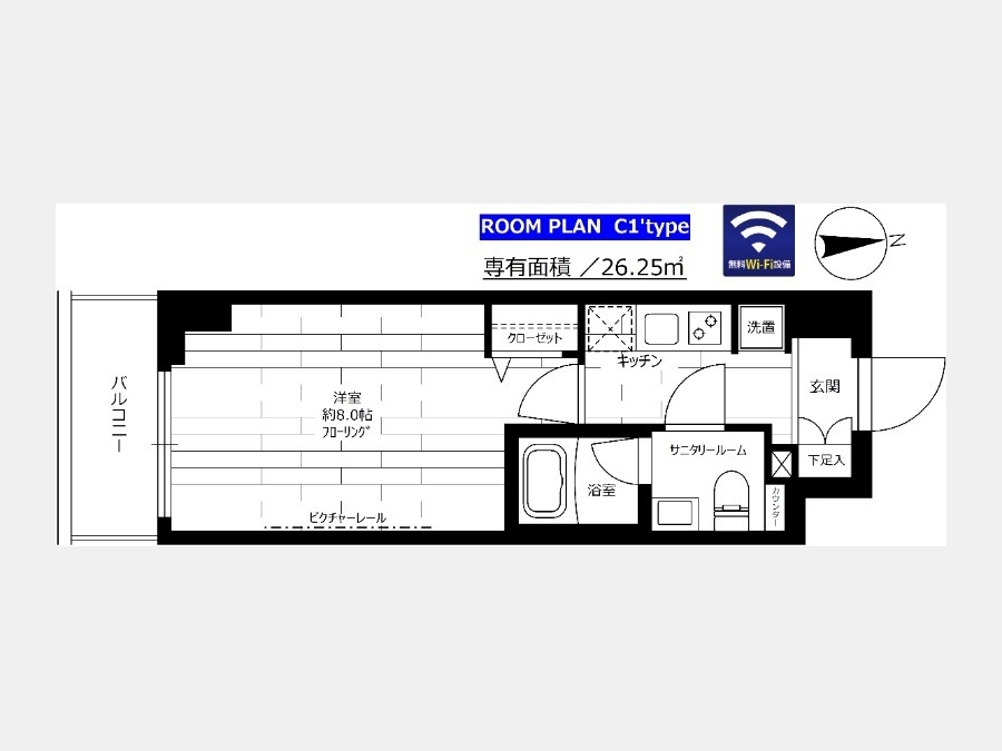 | 専有面積 | 26.25m² | バルコニー面積 | |