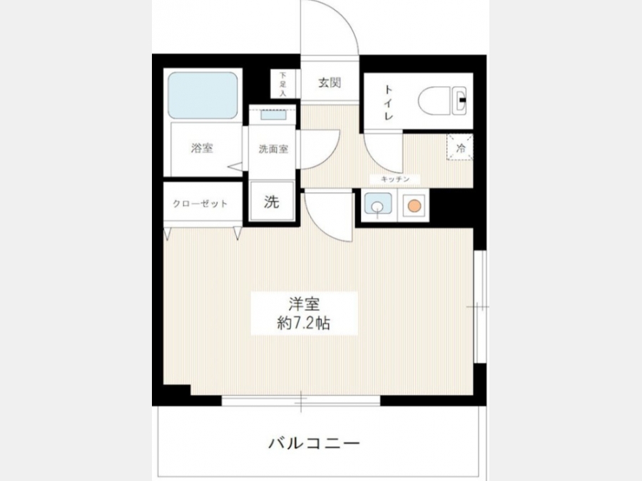 洋室 7.2 畳 1 室 K 2 畳 1 室 |