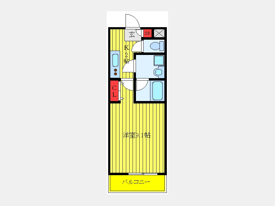 K 2 畳 洋室 9.1 畳 |