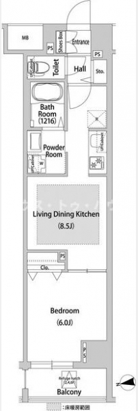 LDK 8.5 畳 1 室 洋室 6 畳 1 室 |