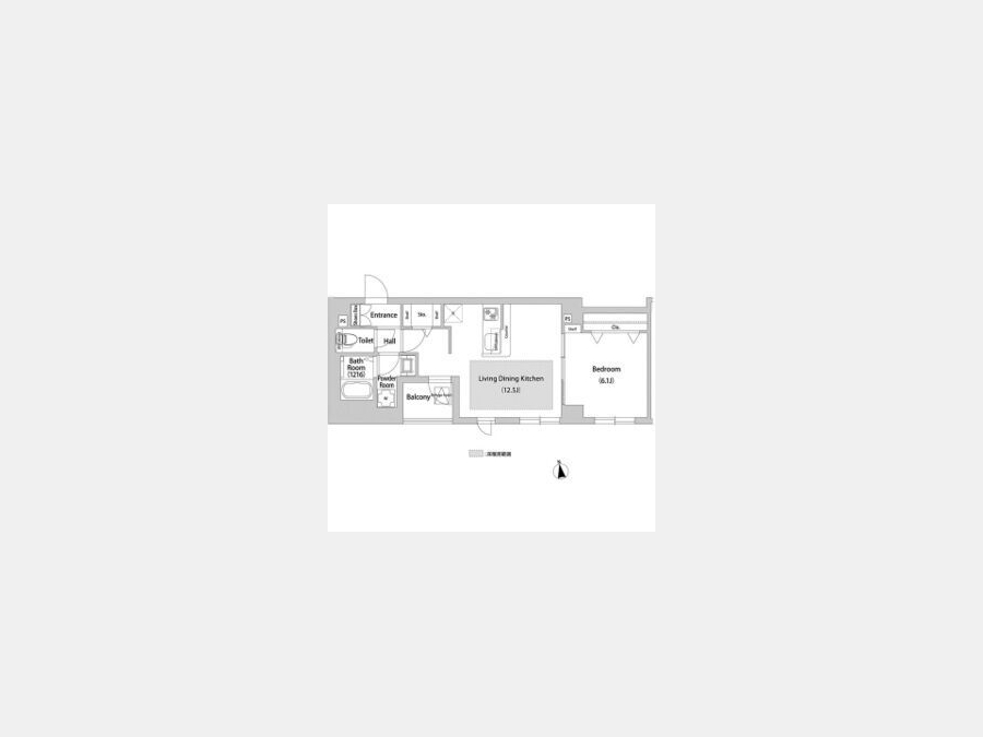 LDK 12.5 畳 1 室 洋室 6.1 畳 1 室 |