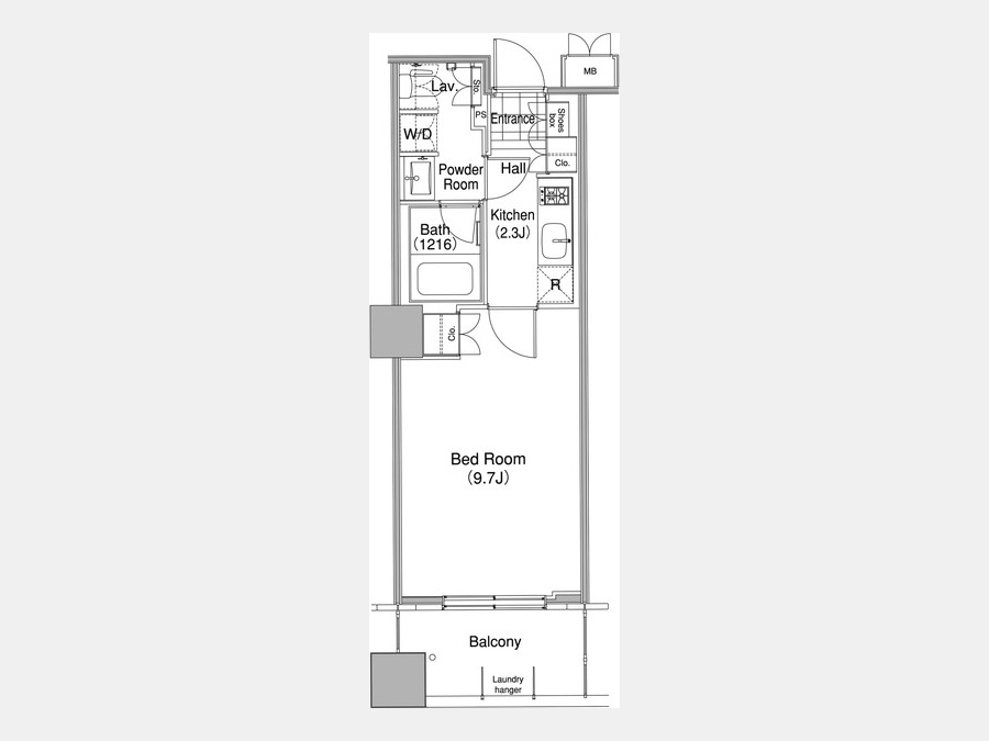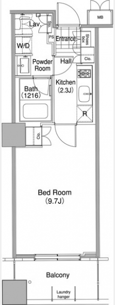 K 2.3 畳 1 室 洋室 9.7 畳 1 室 |