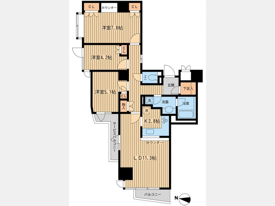 LDK 14.1 畳 洋室 7.8 畳 洋室 5.1 畳 洋室 4.2 畳 |
