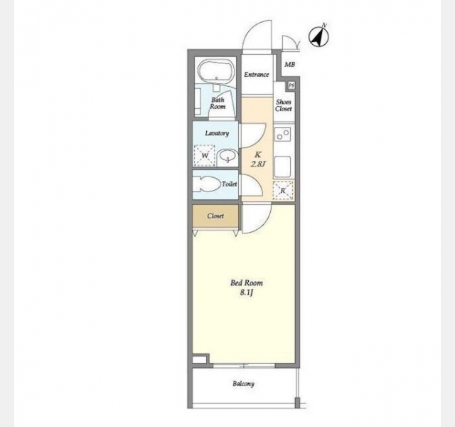 K 2.8 畳 1 室 洋室 8.1 畳 1 室 |