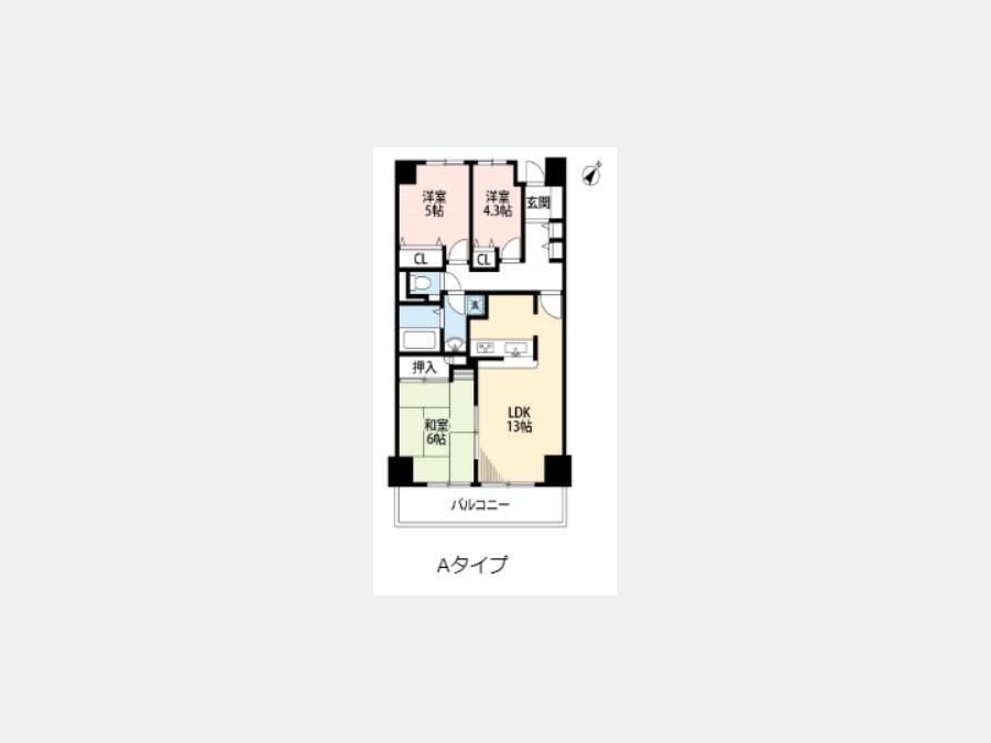 和室 6 畳 洋室 5 畳 洋室 4.3 畳 LDK 13 畳 |