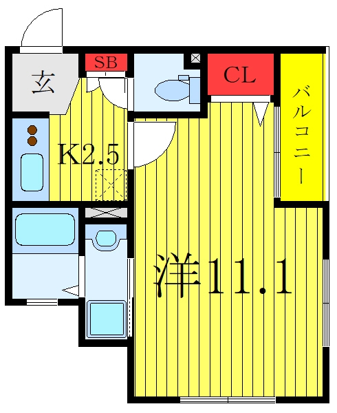 洋室 11.1 畳 2 階 1 室 K 2.5 畳 2 階 1 室 |