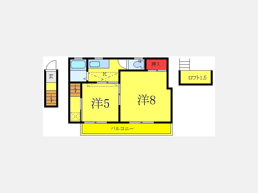 | 設備・条件 | 2階以上、最上階、角部屋、南向き部屋、温水洗浄便座、室内洗濯機置き場、フローリング、ロフト付き、エアコン、バルコニー、即入居可、2人入居相談、TVドアホン、駐輪場、都市ガス | ||