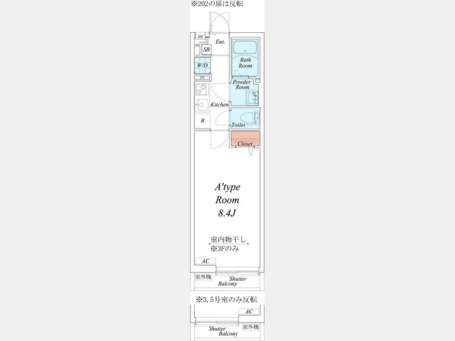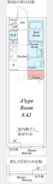 | 間取り | 1K | 階建 | 2階/3階建 |
