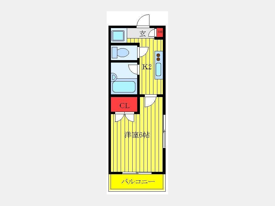 洋室 6 畳 1 室 K 2 畳 1 室 |
