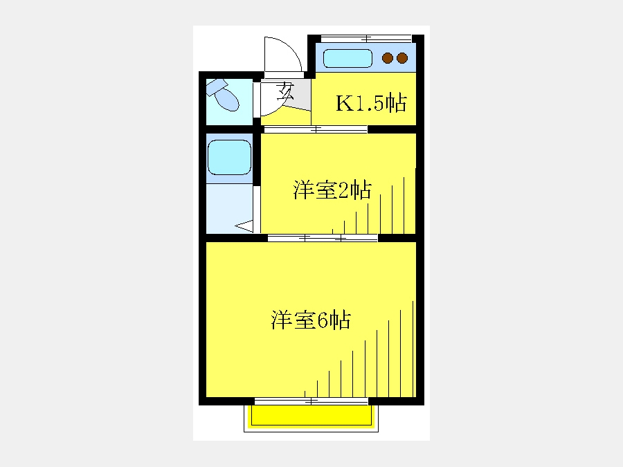 洋室 6 畳 洋室 2 畳 K 1.5 畳 |