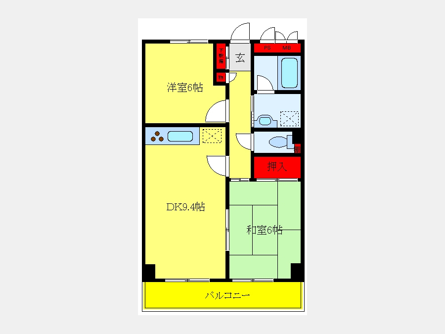 DK 9.4 畳 洋室 6 畳 和室 6 畳 |