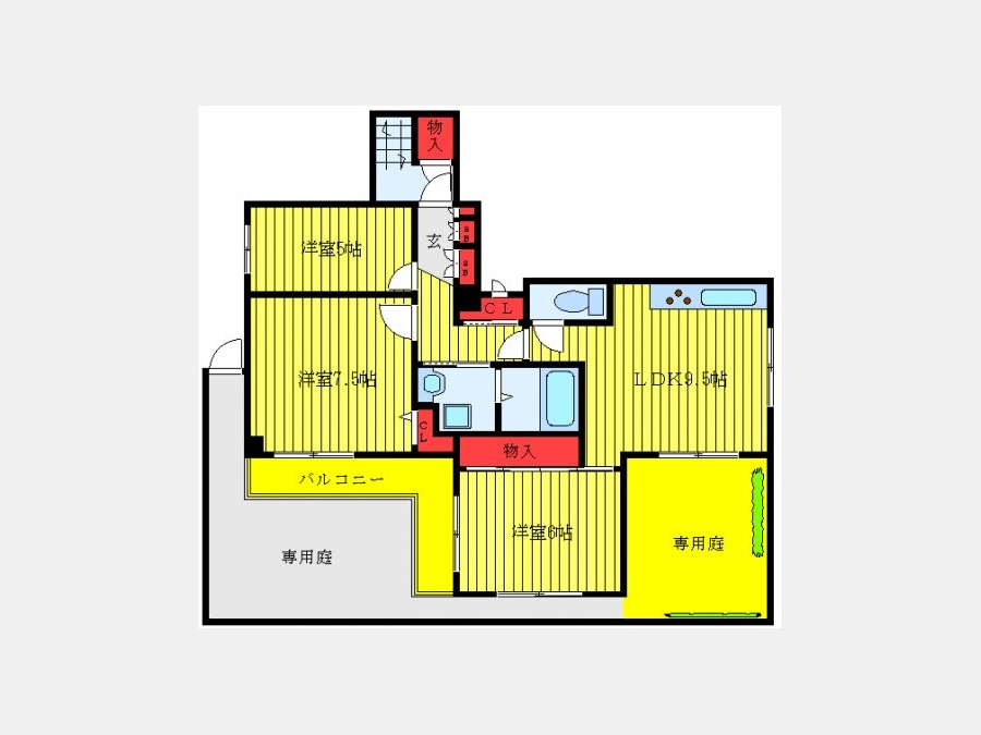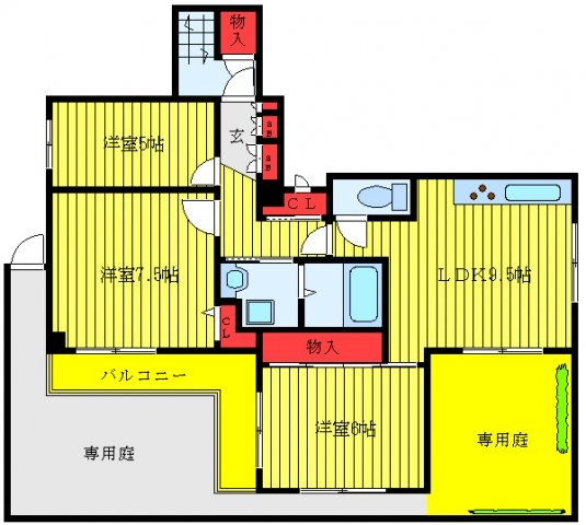 洋室 7.5 畳 洋室 6 畳 洋室 5 畳 LDK 9.5 畳 |