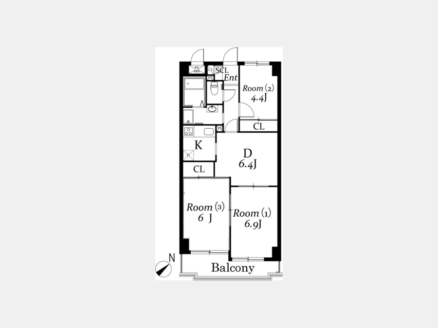 洋室 6 畳 洋室 6.9 畳 洋室 4.4 畳 DK 6.4 畳 |