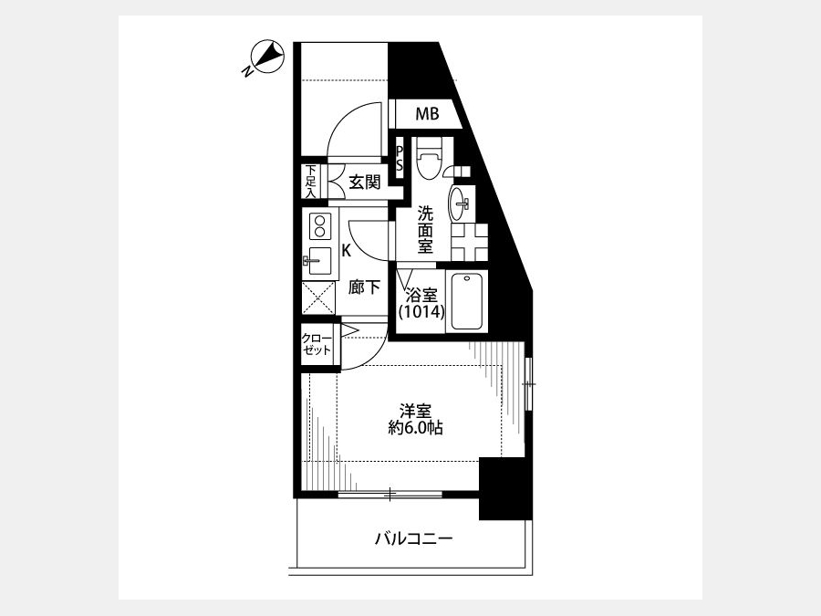 洋室 6 畳 1 室 K 1 室 |