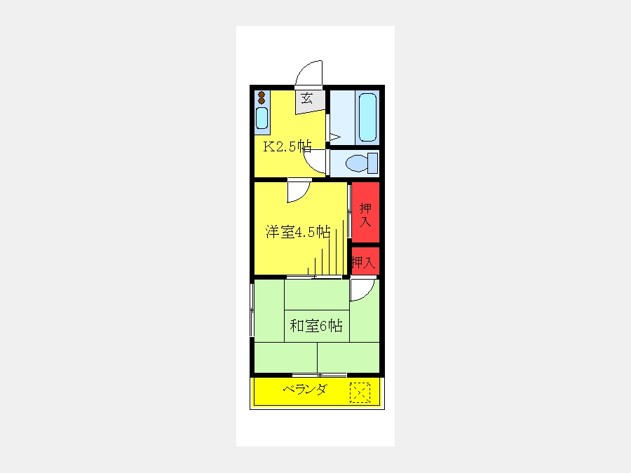 洋室 4.5 畳 和室 6 畳 K |
