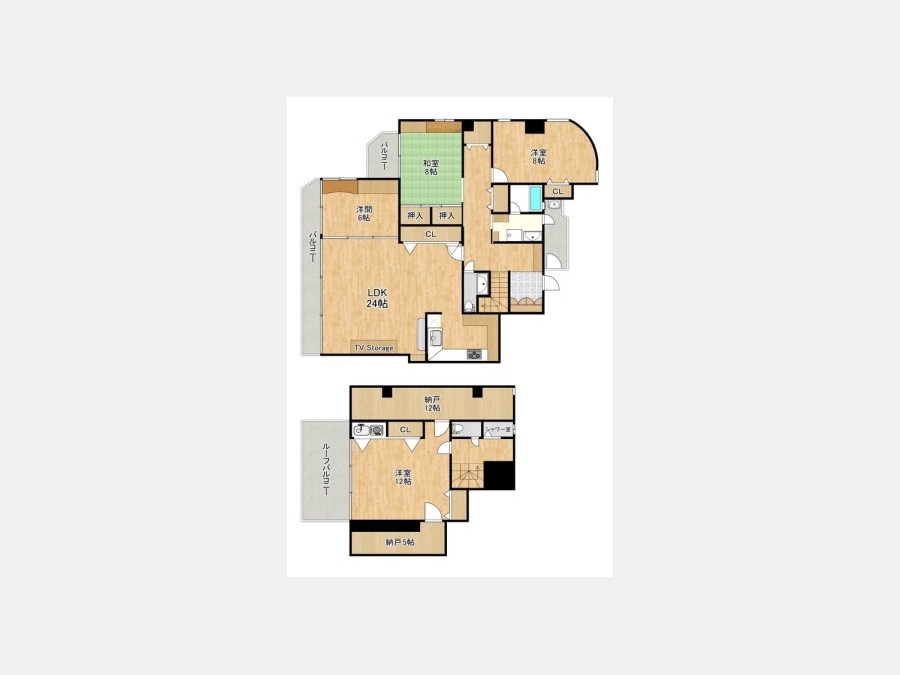 LDK 24 畳 和室 8 畳 洋室 8 畳 洋室 12 畳 LDK(11.00畳) 和室(6.00畳) 洋室(5.00畳) |