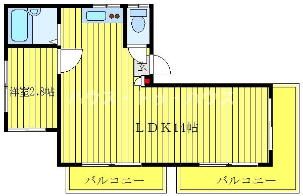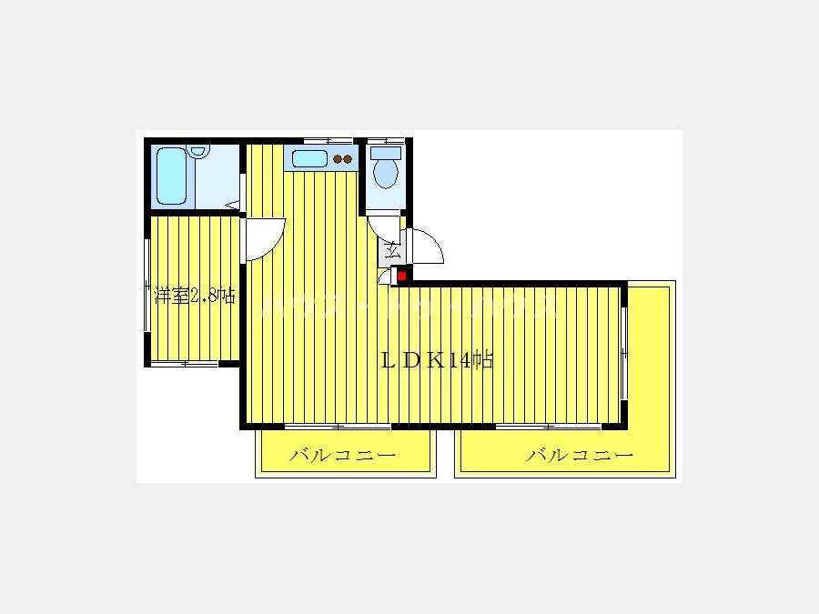 | 設備・条件 | 2階以上、最上階、バス・トイレ別、室内洗濯機置き場、フローリング、エアコン、バルコニー、礼金なし、都市ガス | ||