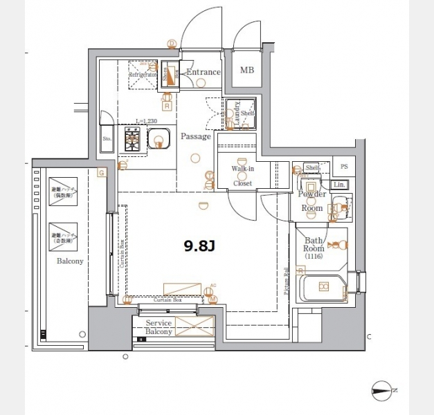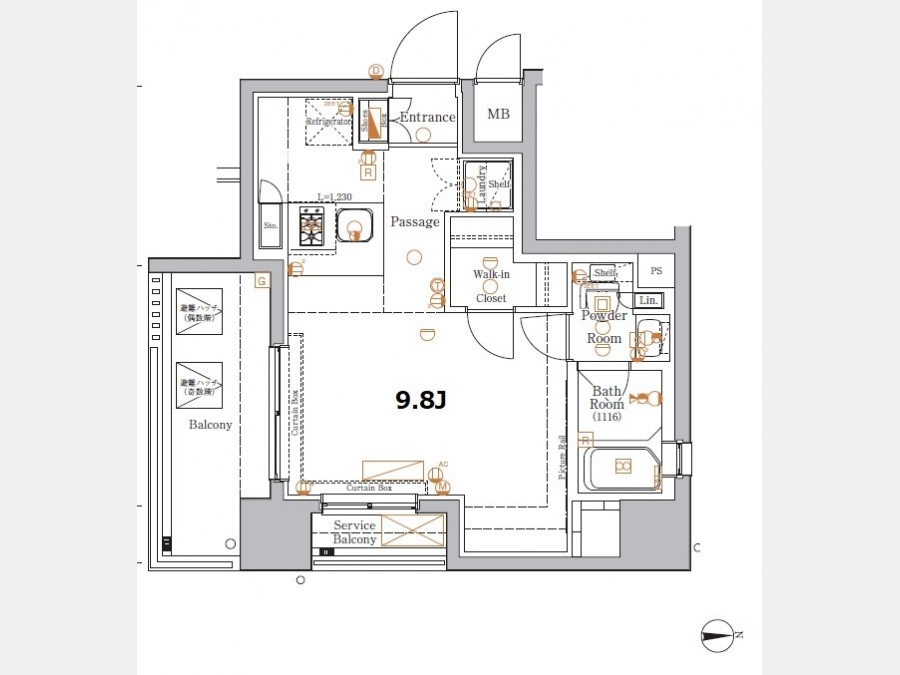 洋室 9.8 畳 |